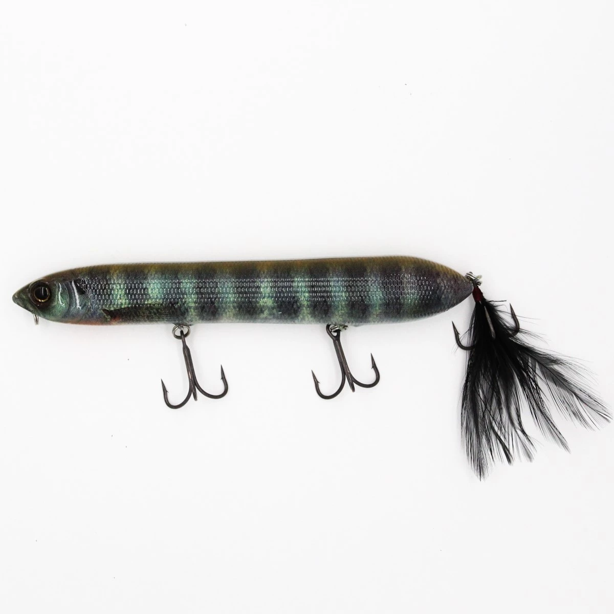 The Deps Brachiostick is a “remote controlled pencil popper” with a rear center of gravity and a long body. This allows for long casts that can reach boils or schooling fish off in the distance without spooking them. This is especially important in clear water situations. It also walks with ease thanks to the small spring weight. The variable balancer gives it a unique sound and sharp movement as it moves side-to-side. This is a high-performance pencil popper that will leave you shaking your head after seeing how well it works and how far it casts.